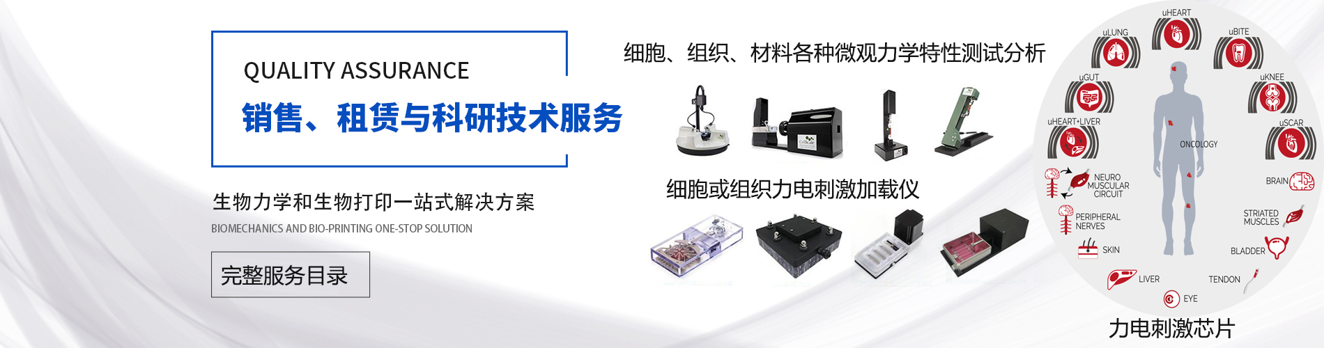 世聯(lián)博研(北京)科技有限公司簡稱為世聯(lián)博研。意即聯(lián)合世界上博士研究生,把歐美日韓等國家的生物力學(xué)和3D生物打印等前沿產(chǎn)品與技術(shù)引進(jìn)中國,為客戶提供經(jīng)濟(jì)的解決方案服務(wù)項(xiàng)目涵蓋: 1、細(xì)胞組織應(yīng)力應(yīng)變加載產(chǎn)品 1.1 細(xì)胞、組織牽拉加載培養(yǎng)與檢測分析系統(tǒng) 1.1.1 美國flexcell柔性基底剛度可調(diào)細(xì)胞牽張拉伸系統(tǒng) 1.1.2 美國flexcell三維基質(zhì)凝膠細(xì)胞或組織牽張系統(tǒng) 1....