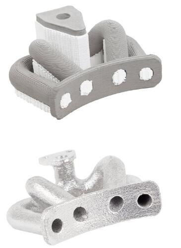 我們的水基金屬糊劑是水溶性的,從而具有僅用水即可將未燒結(jié)零件熔合在一起的dute能力。 可以通過(guò)打印簡(jiǎn)單零件并通過(guò)將要連接的區(qū)域浸入水中來(lái)附著它們來(lái)創(chuàng)建復(fù)雜的裝配體。 燒結(jié)后,所得組件的強(qiáng)度與單個(gè)零件一樣。 也可以使用我們的金屬漿將相似的過(guò)程用于將3D打印的零件燒結(jié)到相同合金的機(jī)械零件上。