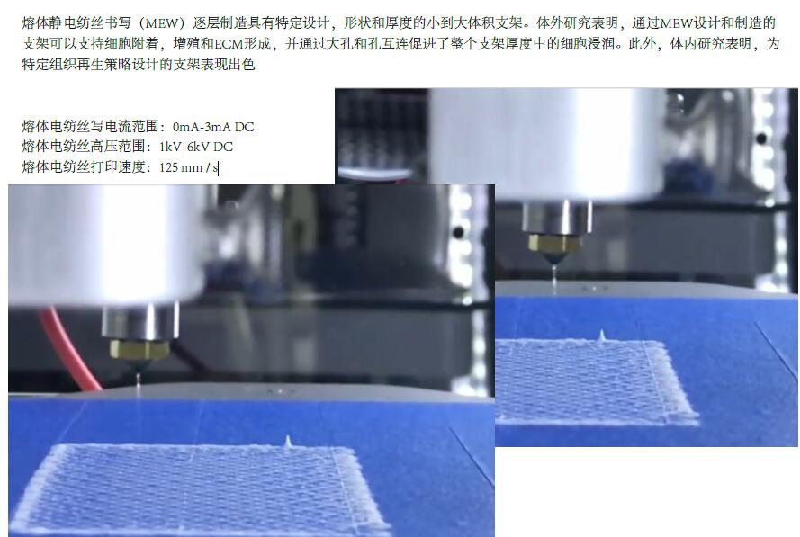 熔體靜電紡絲書(shū)寫(xiě)(MEW)逐層制造具有te定設(shè)計(jì),形狀和厚度的小到大體積支架。體外研究表明,通過(guò)MEW設(shè)計(jì)和制造的