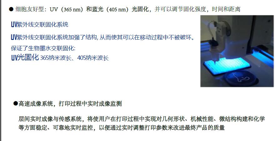 紫外線殺菌:集成紫外線殺菌系統(tǒng),無(wú)需生物安quan柜即可進(jìn)行無(wú)菌條件下的干細(xì)胞打印。
