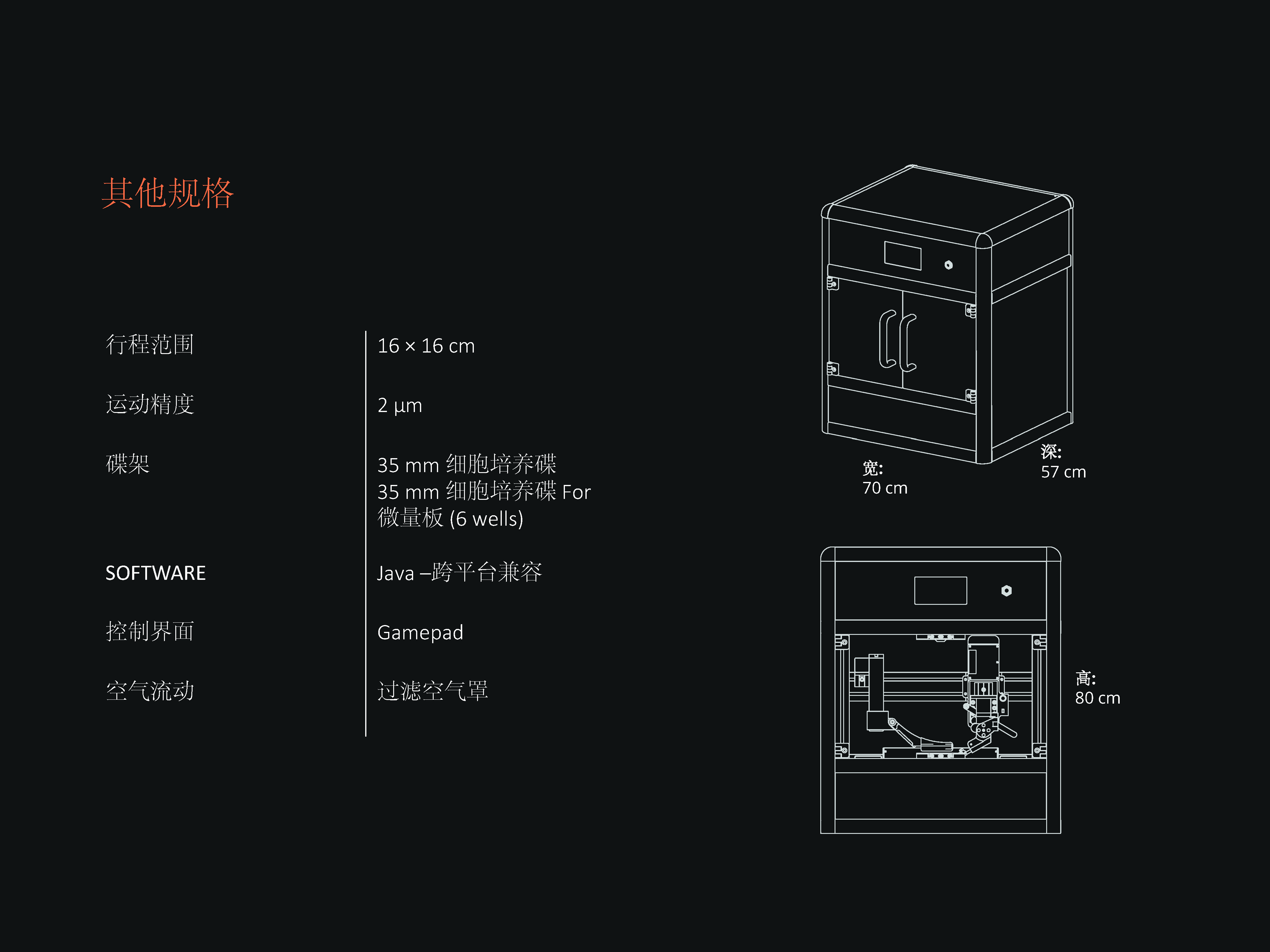 可以實(shí)現(xiàn)高精度和高分辨率的打印多種不同類型的細(xì)胞。設(shè)備尺寸為80厘米(高)x 70厘米(寬)x 57厘米(高),包括一個(gè)微型操縱臂和一個(gè)電動(dòng)平臺(tái),用于精確定位其打印機(jī)頭和樣品