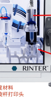 適合打印:各種不需要加熱的水凝膠,細(xì)胞、顆粒物凝膠(磷酸鈣鹽),適于構(gòu)建各種支架、微型組織以及對(duì)材料的測(cè)試。