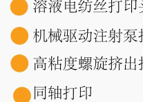 打印頭和打印技術(shù)類型:溶體電紡絲寫(xiě)、微閥細(xì)胞友好型ink-jet、高精度螺旋擠出打印、等。