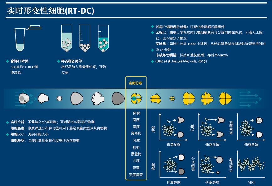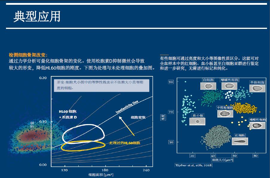 是一種以流式細胞儀的速度檢測單個細胞形態(tài)和力學性質(zhì)的技術,每個細胞都被實時拍攝、分析和成像存儲。 此外,非破壞性的力量應用于細胞,提供一種方便,穩(wěn)健和高通量的技術進行生物標志物的檢測,可用于基礎科學和臨床研究。