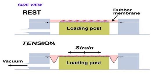 图4:Schematic of strain application to cells in a StageFlexer I®(在StageFlexerI®中对细胞施加应变的示意图).