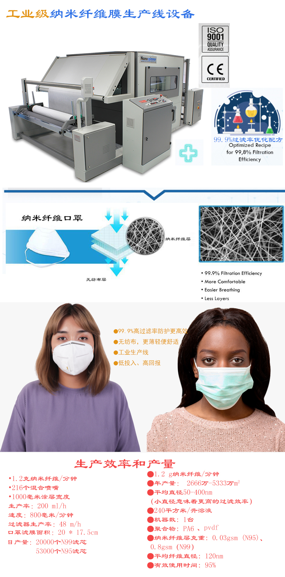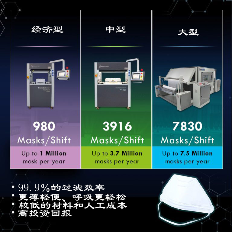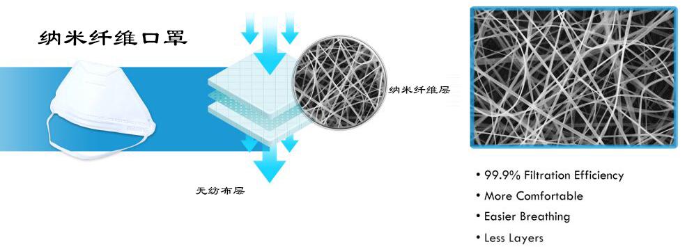 一、能生產(chǎn)比N95口罩更舒適、病毒過濾率更高的口罩-新一代納米纖維口罩:
