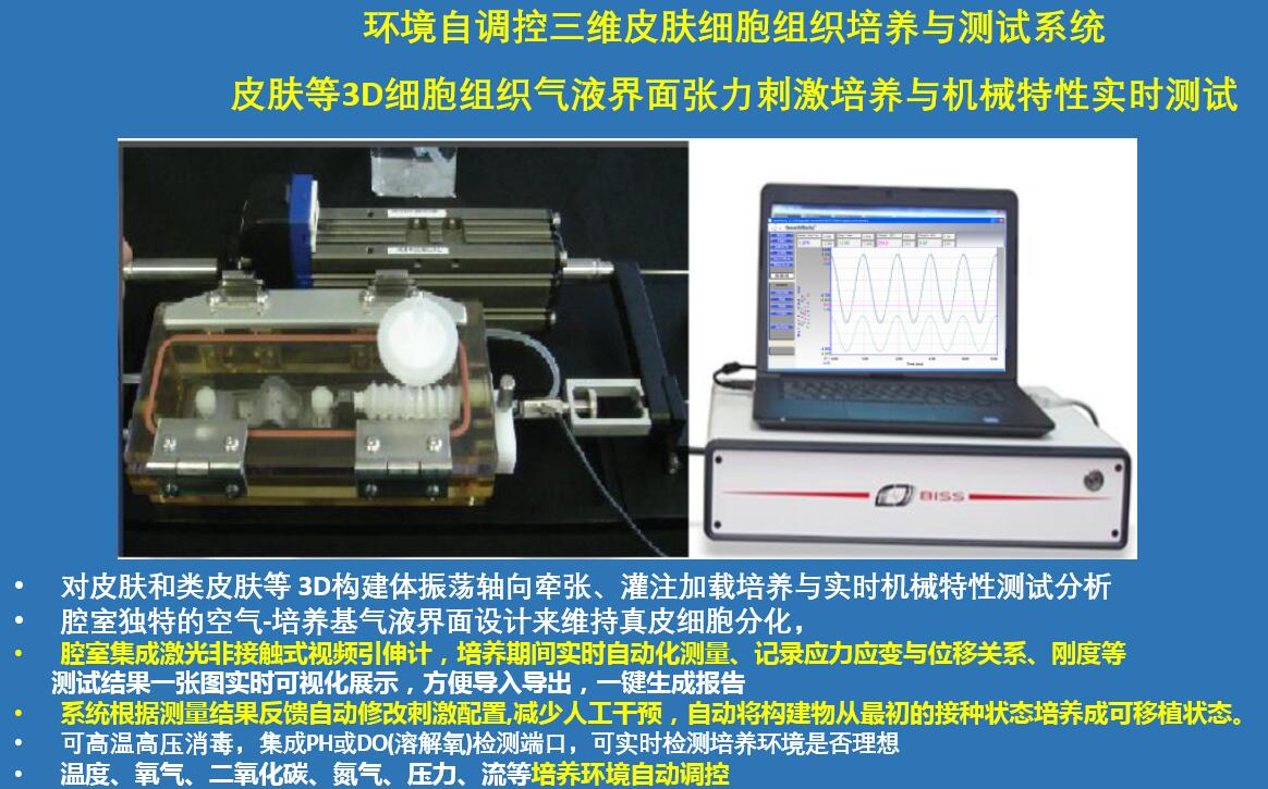 提供可以用于包括三維軟骨、血管、肌腱韌帶、皮膚、心臟瓣膜、骨組織在內(nèi)的等各種3D細(xì)胞組織材料構(gòu)建體機(jī)械力加載培養(yǎng)與機(jī)械特性實(shí)時(shí)測(cè)量,可偶聯(lián)電刺激的各種三維構(gòu)建體應(yīng)力刺激培養(yǎng)與機(jī)械特性實(shí)時(shí)測(cè)試分析系統(tǒng)。