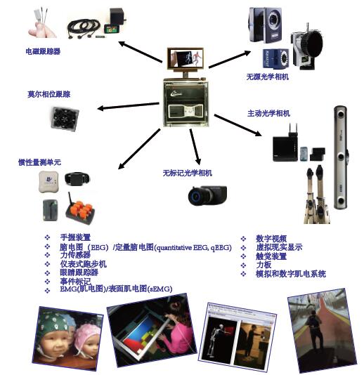 根據(jù)需求配置各種運(yùn)動(dòng)跟蹤器、EMG(肌電圖)、測力臺(tái)、手傳感器、EEG腦電圖、