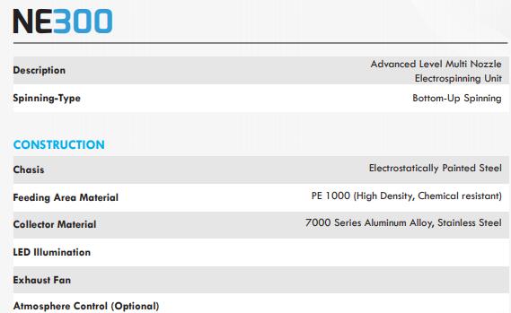 | 產(chǎn)品名稱 | Electrospinning machine Ne-300(NE300 Multinozzle Nozzle Electrospinning/Spraying Machine),NE300 單噴嘴靜電紡絲/噴涂機 |