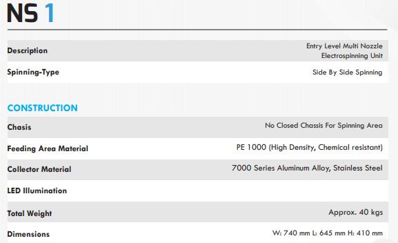 | 產品名稱 | NS1納米Spinner靜電紡絲機/噴涂設(NS1 NanoSpinner Electrospinning/Spraying Equipment) |